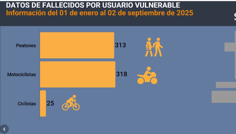 En primer lugar, se encuentran los motociclistas, con 318 muertes, seguidos por los peatones, con 313 decesos.