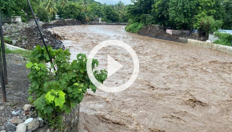 Debido a las fuertes lluvias registradas en las últimas horas, el caudal del río El Jute, en La Libertad, ha aumentado en consideración. Ante ello, las autoridades de Protección Civil, junto a elementos militares, han cerrado por completo el paso vehicular para los conductores que se dirigen a la playa San Diego o al Puerto de La Libertad, esto con el fin de evitar alguna tragedia.