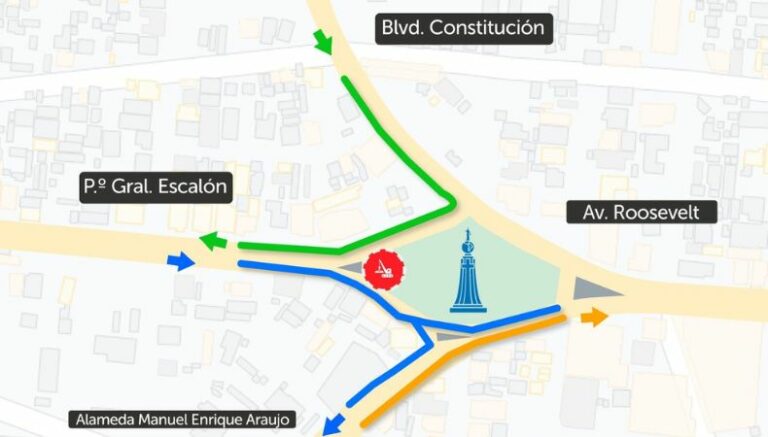 El Ministerio de Obras Públicas y de Transporte (MOPT) informó que realizará un cierre temporal vehicular en el retorno norte de la Plaza Divino Salvador del Mundo, en San Salvador.