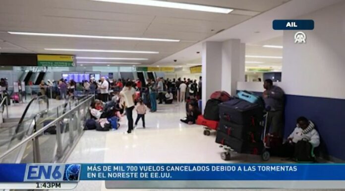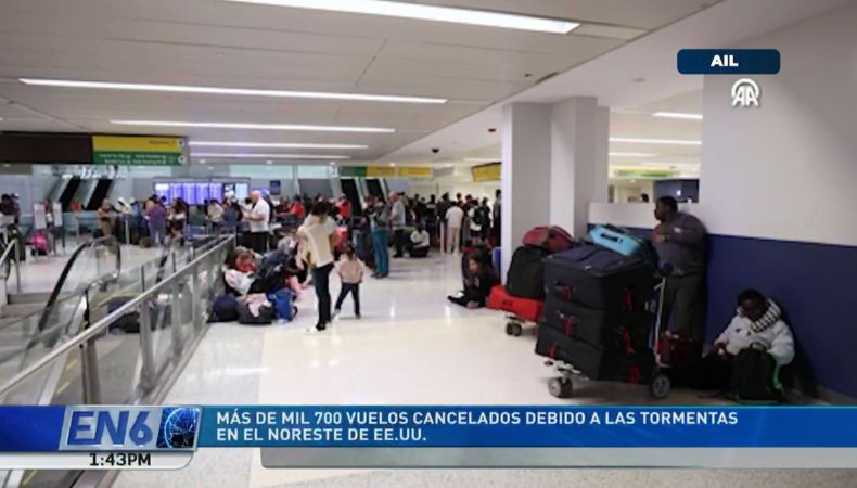 En Estados Unidos, más de 1,700 vuelos fueron cancelados y 5,000 se retrasaron ayer debido al clima tormentoso que azota la parte noreste del país.