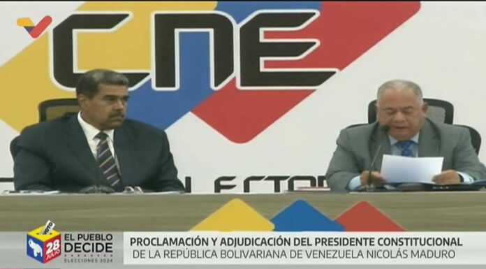 Con esta ratificación, Maduro obtuvo el tercer mandado consecutivo al obtener «la mayoría relativa de votos válidos» y gobernará hasta el 2031.