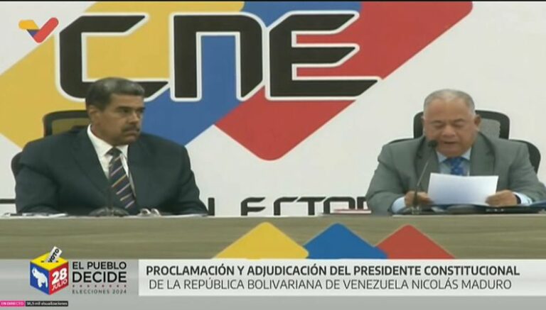 A través de un acto oficial, el Consejo Nacional Electoral (CNE) de Venezuela llevó a cabo una ceremonia, en la que proclamaron a Nicolás Maduro como presidente constitucional electo para el periodo de 2025-2031.