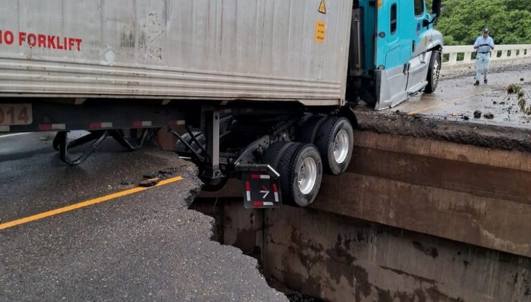 En la madrugada de este viernes 28 de junio, las fuertes lluvias en Guatemala provocaron el colapso del puente en la aldea La Ciénaga, El Progreso, Jutiapa, Guatemala. En las últimas horas, a través de las redes sociales se ha dado a conocer que un tráiler quedó atravesado al tratar de transitar en el puente.