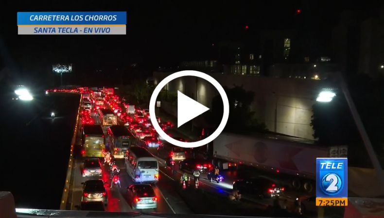 Como se puede apreciar, justo en la salida de Santa Tecla, en La Libertad, parecería una fotografía, pero no es así. A vuelta de rueda, camiones, furgones, buses, vehículos y motocicletas se ven detenidas debido a un «cuello de botella» que se forma en la incorporación que viene del bulevar Monseñor Romero, buscando el Occidente del país.