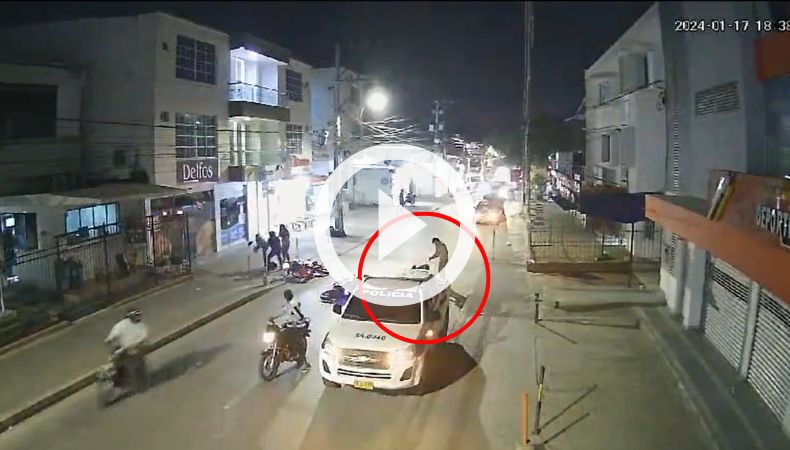 Un sicario acabó con la vida de su víctima, sin importarle que enfrente estuviera estacionada una patrulla de policía. Este crimen se registró la noche del miércoles 17 de enero, en la ciudad de Sincelejo, ubicada al norte de Colombia, y quedó grabado por cámaras de seguridad.