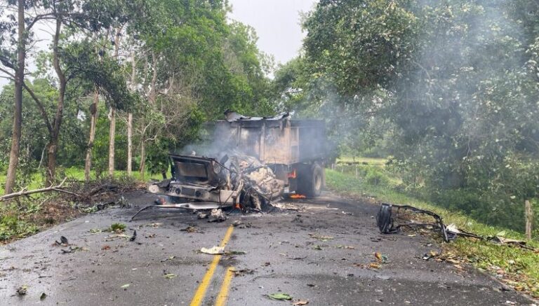 «En la acción terrorista registrada en el poblado de Puerto Jordán del departamento de Arauca, fronterizo con Venezuela, el GAO (Grupo Armado Organizado) ELN utilizó artefactos explosivos improvisados», externó el Ejército colombiano en la red social X.