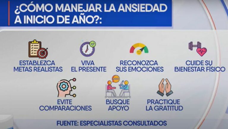 Adicionalmente, existen estrategias para manejar la ansiedad de forma más integral. Estas incluyen establecer metas realistas que sean alcanzables, enfocarse en el presente en lugar de preocuparse por el futuro, reconocer y aceptar las emociones propias, evitar compararse con los demás, priorizar el bienestar físico a través del ejercicio y una alimentación equilibrada, practicar la gratitud como un hábito diario y buscar ayuda profesional cuando sea necesario. Con estas herramientas, es posible enfrentar el nuevo año con mayor equilibrio y confianza.