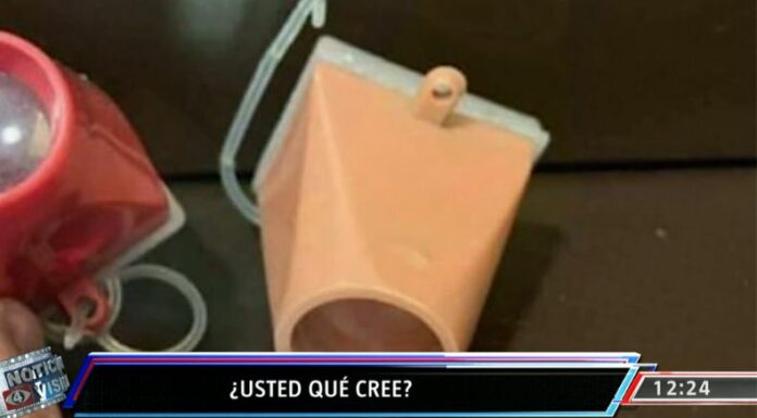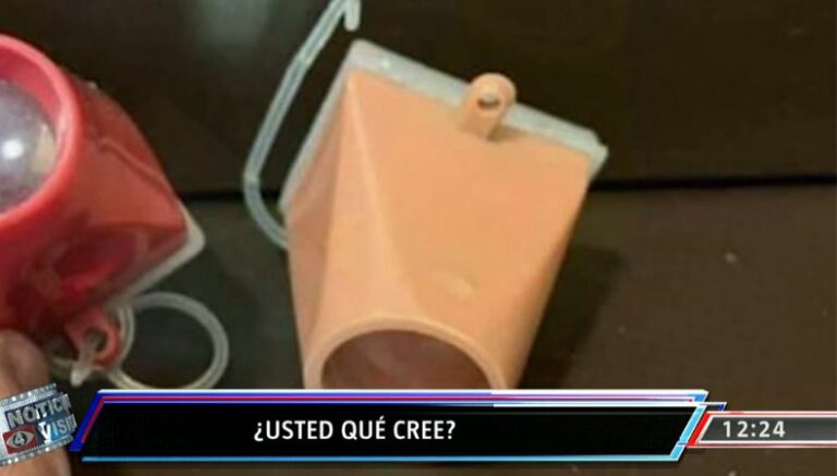 Lo interesante, es que la cosa, que parece estar hecha de plástico, consiste en una especie de cono alargado, que tiene un orificio donde se ve tipo de cristal.