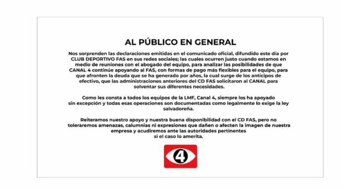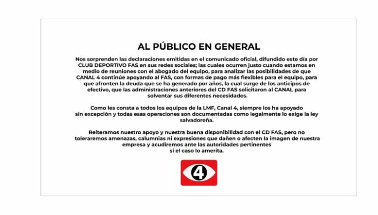 A toda la afición del Club Deportivo FAS, y al público en general, les comunicamos lo siguiente.