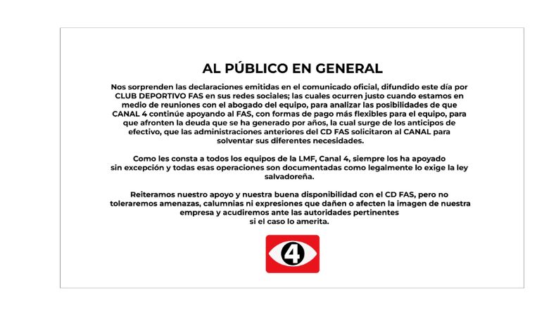 #Ahora | A toda la afición del Club Deportivo FAS, y al público en general, les comunicamos lo siguiente: pic.twitter.com/o1NwRA2MBi