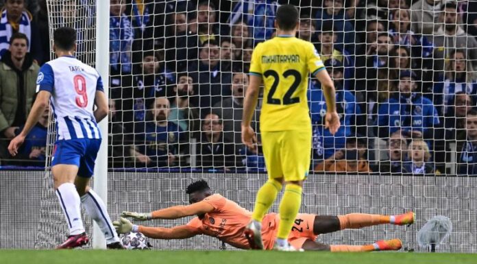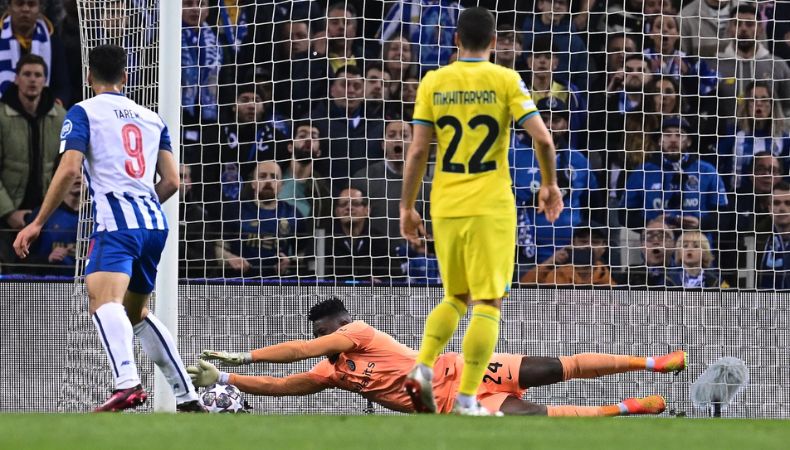 Desde el inicio del encuentro, el conjunto portugués se volcó al ataque. Mateus Uribe tuvo la primera gracias a un tremendo zapatazo que André Onana mandó al córner al 2′.