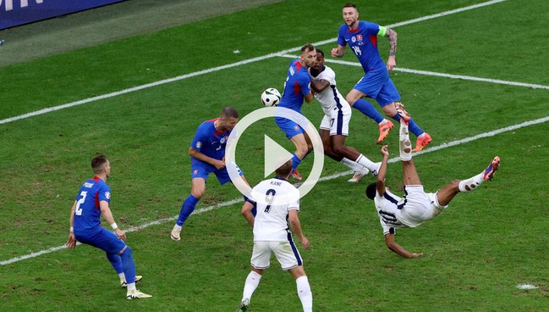 La acción inició de un tiro de esquina desde la izquierda ejecutado por Kyle Walker y prolongado hacia el punto penal por la cabeza de Guéhi. El esférico llegó hasta donde se encontraba Jude, cercano al punto penal, y el exDortmund definió con una acrobacia que pasará a la posteridad en la Eurocopa.