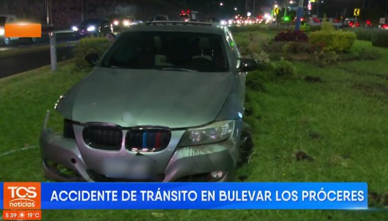 Durante horas de la madrugada de este día, 7 de marzo, las autoridades reportaron de un accidente de tránsito sobre el bulevar Los Próceres, San Salvador. De acuerdo con el informe preliminar, el conductor se durmió al volante, provocando que impactara con otro vehículo y quedara sobre el engramillado.