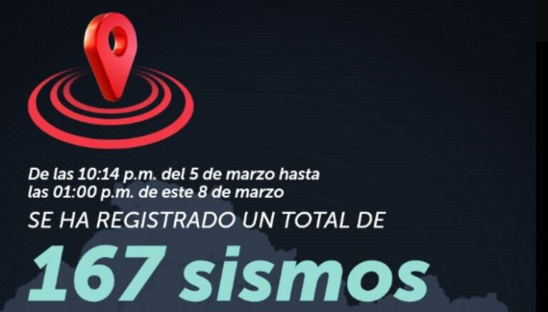 Desde hace tres días, el pasado 5 de marzo, el MARN le brindó seguimiento a la actividad sísmica en Conchagua, La Unión, debido al inesperado aumento de movimientos telúricos registrados en la zona. Hasta el día de hoy, en la última actualización difundida a través de la cuenta X del Ministerio, reportó 167.