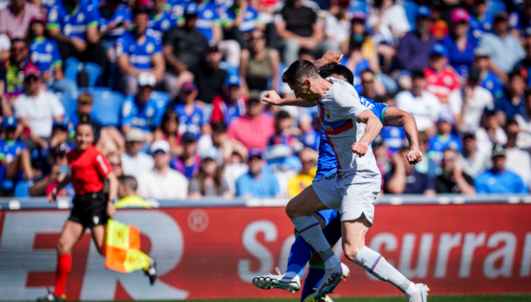 Antes de que llegar la parte complementaria, Robert Lewandowski realizó un remate con la cabeza que el guardameta David Soria contuvo gracias a una tremenda estirada al 45+2′.