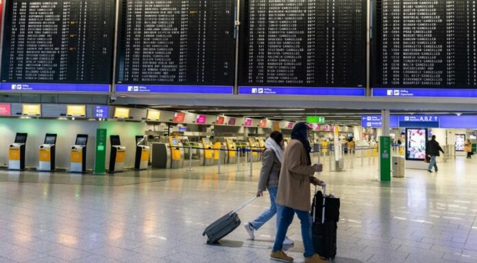 Por su parte, el aeropuerto de Düsseldorf, el principal de ese estado federado y el cuarto en Alemania en términos de pasajeros, informó que de los 330 vuelos programados para hoy, solo se llevarán a cabo 89 despegues y aterrizajes.
