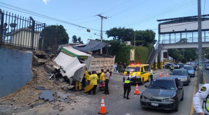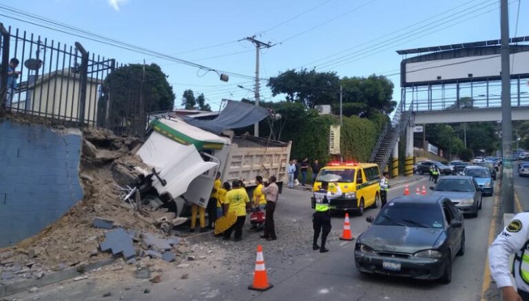 Esta tarde, Cuerpos de socorro reportaron un fuerte accidente, en el cual un camión impactó con una infraestructura a la altura de la colonia Cima 1, en San Salvador.