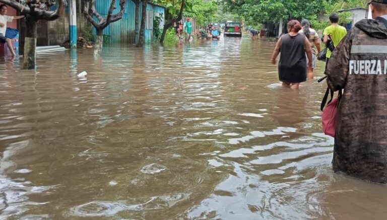 Más familias son evacuadas por las inundaciones generadas por las lluvias. Las comunidades Agua Zarca y Los Marranitos, en Zacatecoluca, La Paz, continúan inundadas. Las autoridades han evacuado a decenas de familias a un albergue habilitado en el sector.