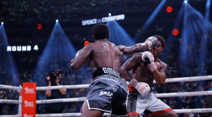 Sin embargo, Spence siempre podía ponerse de pie, mostrándose un poco mal por los muchos golpes que recibía, pero seguía peleando, esperando hacer la hazaña de Noquear a Crawford.