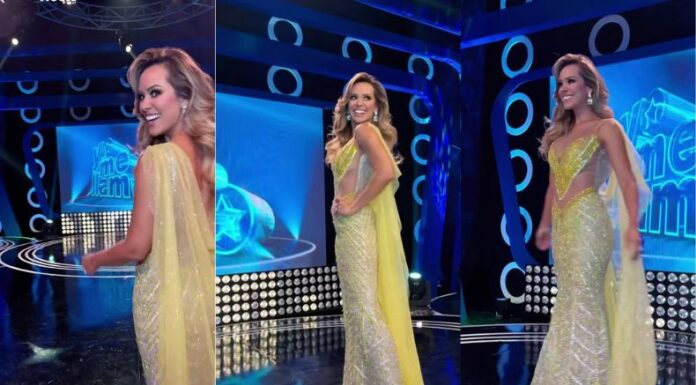 La presentadora de televisión, Luciana Sandoval, derrochó elegancia y belleza en la quinta gala del programa «Yo me llamo» que se llevó a cabo el pasado domingo 19 de mayo. Donde, lució espectacular sobre el «Escenario de los Sueños», en el que los participantes demuestran su talento en cuanto a imitación de grandes artistas internacionales.