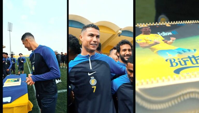 Este lunes, Al-Nassr se encargó de festejarle su natalicio previo al inicio del entrenamiento. El «Bicho» saltó al campo con normalidad hasta que se encontró con sus compañeros, quienes le mostraron con mucha emoción el pastel que le tenía preparado.