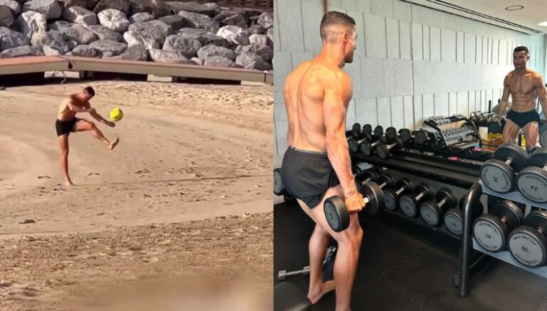 Lejos de tomarse un periodo de relajación, «CR7» continuó entrenando a pesar de quedarse en un lujoso hotel ubicado en la capital de los Emiratos Árabes Unidos. Ocupó el gimnasio del inmueble para mantenerse a tono y aprovechó la arena de las paradisiacas playas para hacer técnicas con el balón.