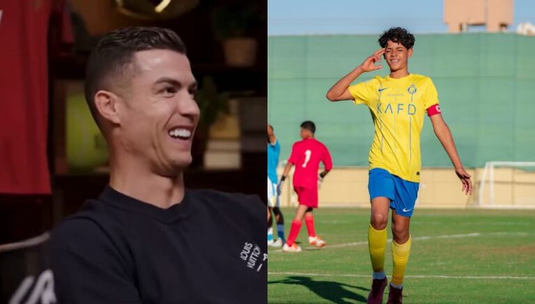 Otro de los momentos interesantes en la entrevista fue cuando MrBeast le planteó a «CR7» la posibilidad de compartir cancha con Cristiano Jr, al igual que LeBron James y su retoño Bronny en los Lakers.