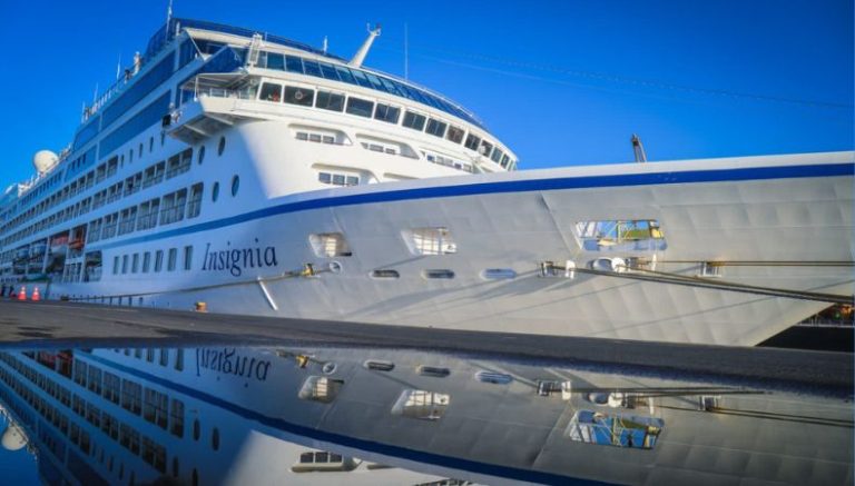 El crucero Insignia llegó este día al Puerto de Acajutla con más de 1,000 turistas que disfrutarán de El Salvador. Este es el primer crucero del 2023.