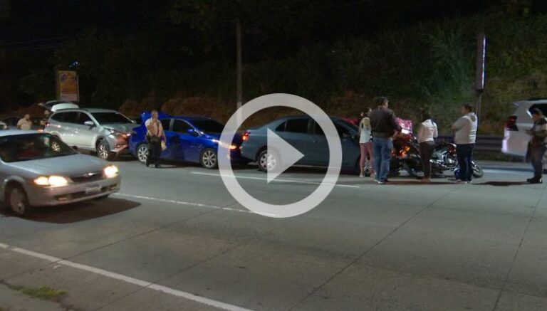 Esta noche ha ocurrido un cuádruple accidente de tránsito sobre la carretera Panamericana, en sentido hacia Santa Tecla. En el percance colisionaron tres vehículos tipo sedán y una motocicleta.