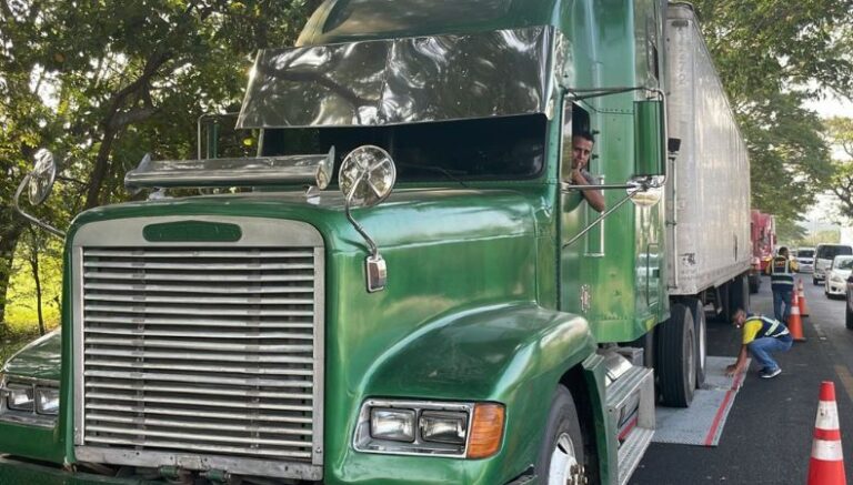 Con el nuevo horario de circulación, el VMT también sumó controles de pesaje y revisión mecánica al transporte de carga en distintos puntos del país. La autopista a Comalapa fue uno de los lugares supervisados por el viceministro.