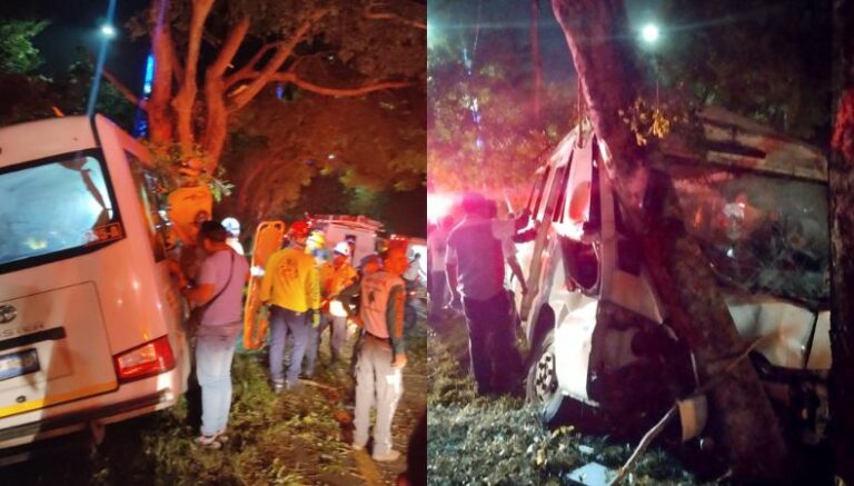 Durante la madrugada, miembros del equipo táctico de Protección Civil, junto a instituciones de primera respuesta, atendieron un aparatoso accidente de tránsito, en el que cuatro personas había quedado atrapadas en un vehículo, luego de que este colisionó contra un árbol.