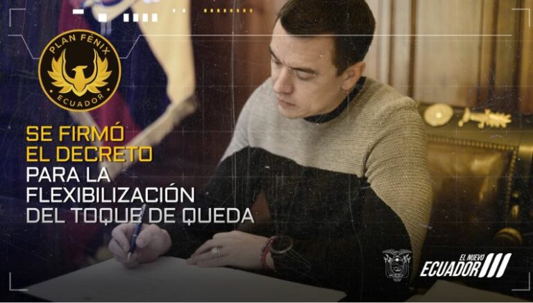 El presidente de Ecuador, Daniel Noboa, decretó que, a partir del día martes 23 de enero, el toque quedó regirá en niveles «Alto», «Medio» y «Bajo», dependiendo de los municipios y la restricción de circulación tendrá horarios diferentes.