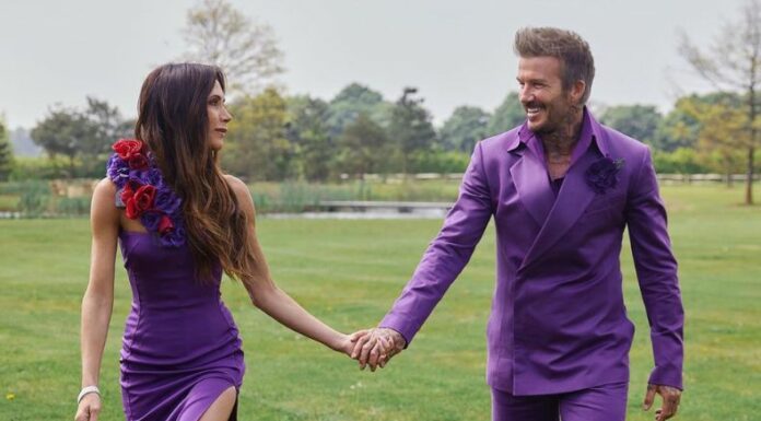 La pareja más consolidada del mundo del entretenimiento, David y Victoria Beckham, llegan a cumplir 25 años de casados y para celebrar tan importante día, recrearon sus fotos del día de su boda 25 años después, luciendo espectaculares trajes de color morado.