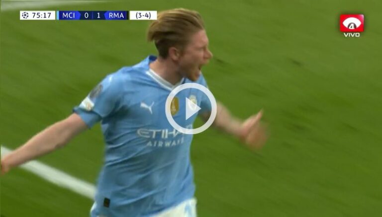 Kevin De Bruyne apareció al minuto 75, poniendo los cartones parejos entre el Manchester City y Real Madrid. Doku hace media jugada desde la banda izquierda, pero el dorsal ’10’ de los Skyblue se encarga de mandar el balón al fondo de la meta.