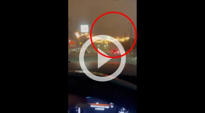 En Guaymas, Sonora, México un conductor quien intentaba movilizarse en medio de la tormenta de área, logro capturar el momento exacto en que ocurrió la explosión eléctrica.