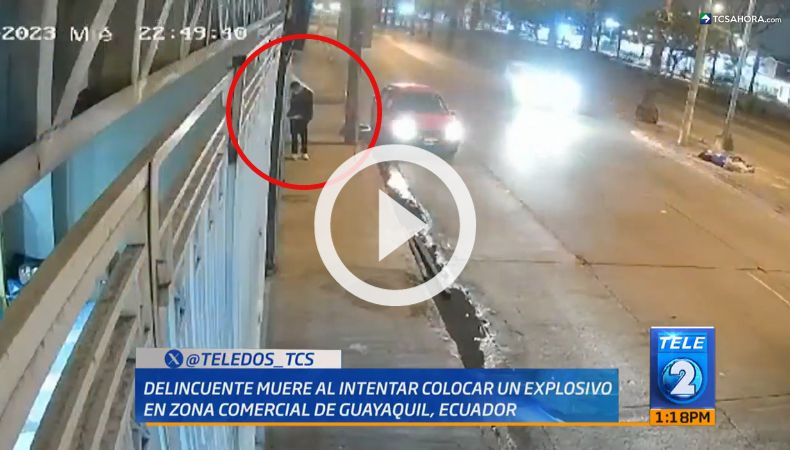 Las cámaras de seguridad captaron la trágica muerte de un presunto extorsionista que intentó poner un explosivo en un negocio en la avenida Francisco de Orellana, del norte de Guayaquil.