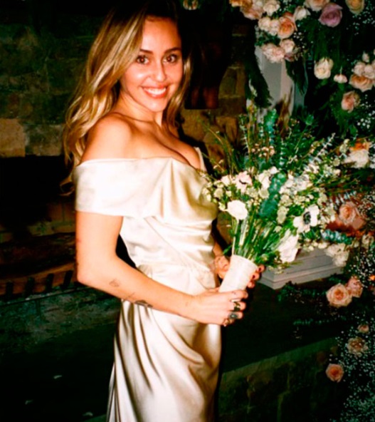 La primera fue Miley Cyrus, quien lo lució en su boda con Liam Hemsworth en 2018. En su caso, optó por una versión sin corsé y con una cola más discreta, confeccionada en un tono blanco perlado brillante. Aunque el diseño era prácticamente el mismo, Demi decidió incorporar un corsé ajustado que le dio más estructura y un largo de falda más pronunciado con varios metros de caída, a diferencia del de Miley, que era más sobrio.