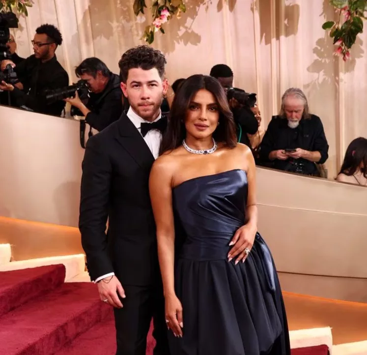 Nick Jonas y Priyanka Chopra aparecieron de la mano. Él la sostuvo por la cintura y ella le acomodó su traje antes de posar para las cámaras. Casados desde hace siete años, siguen mostrándose unidos en cada evento.