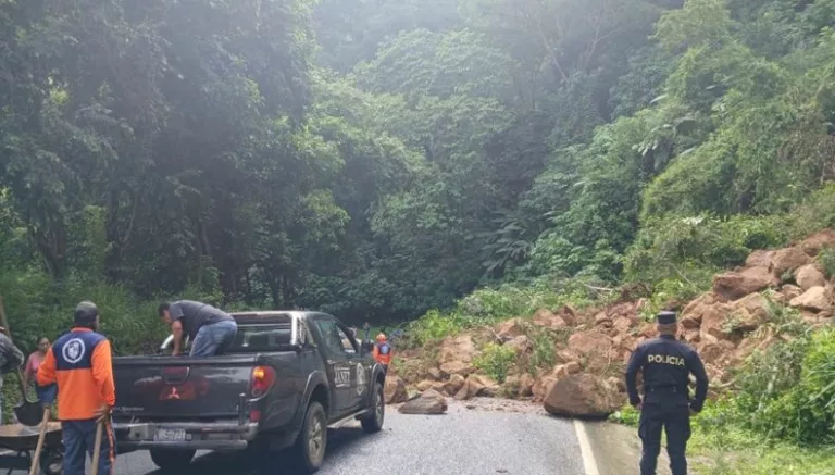 Según las autoridades, las intensas lluvias registradas en las últimas horas provocaron el desprendimiento de lodo y rocas sobre la vía. Equipos de Protección Civil municipal y de la alcaldía de La Libertad Oeste trabajan en la remoción de escombros para restablecer la circulación en la zona.