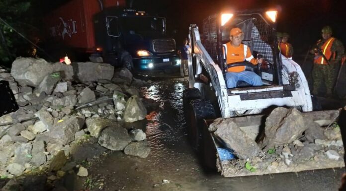 En horas de la noche del día de ayer, 17 de agosto, el personal de Fondo de Conservación Vial (FOVIAL), realizó trabajos de limpieza y recolección de escombros debido a un derrumbe que obstaculizaba el paso en el kilómetro 17 en Los Chorros de la carretera Panamericana.