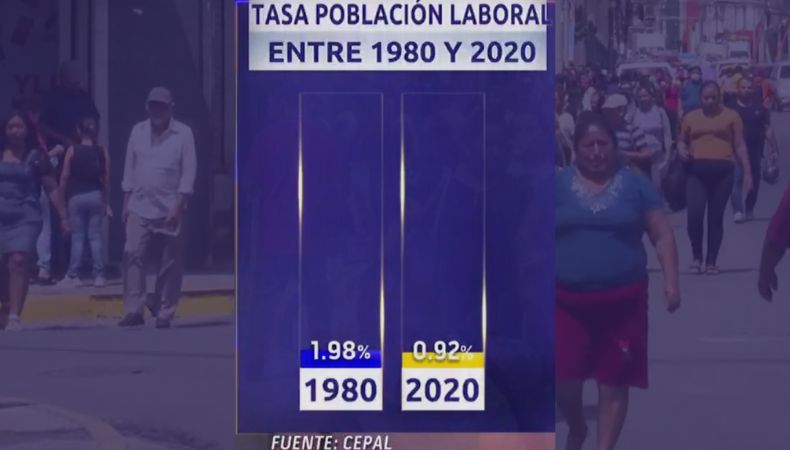 Revela que las últimas cuatro décadas ha disminuido la fuerza laboral en 20 países latinoamericanos, con una población de edad en trabajar en América Latina, desde 1980 a 1985 se destaca un 2.62% y desde el 2015 al 2020 con un 1.38%.