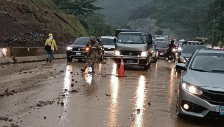 Elementos de la Fuerza Armada y del Ministerio de Obras Públicas y Transporte (MOPT) trabajan en la zona para poder liberar y limpiar.