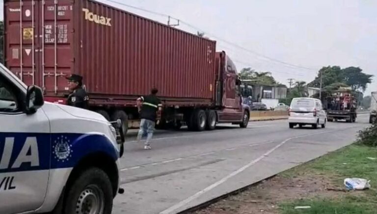 Agentes de la Policía Nacional Civil (PNC) se encontraban procesando la escena donde un adulto mayor murió atropellado esta mañana en la entrada de la colonia Las Palmeras en la carretera que de Acajutla conduce hacia Sonsonate, cuando el conductor de una rastra no respetó la señalización y se llevó los conos que estaba en el perímetro y pasó encima del cuerpo de la víctima. Tras lo sucedido, los agentes procedieron a detenerlo.
