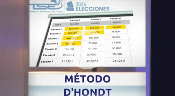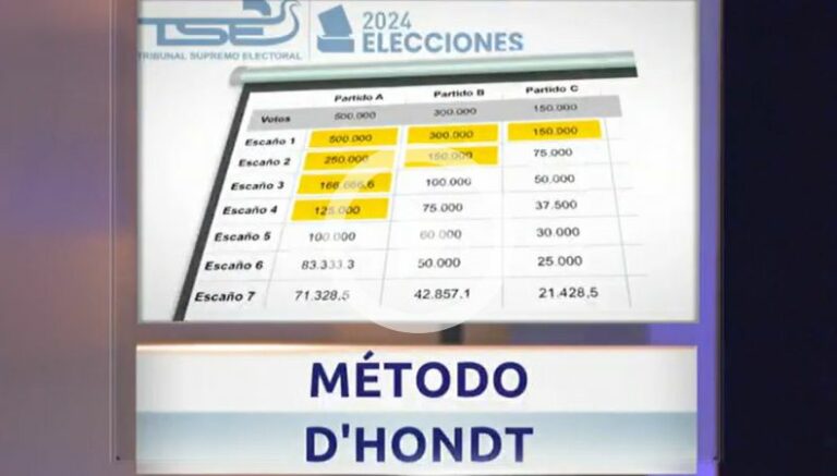“Los diputados serán elegidos a partir del método denominado D´Hondt” de manera que, el total de votos válidos por cada partido, candidato o candidata independiente se va a dividir entre uno, dos, tres y así sucesivamente hasta el número total de diputados que correspondan a la circunscripción electoral departamental. Con esta forma “Solo se tomarán en cuenta Cocientes No Residuos”.