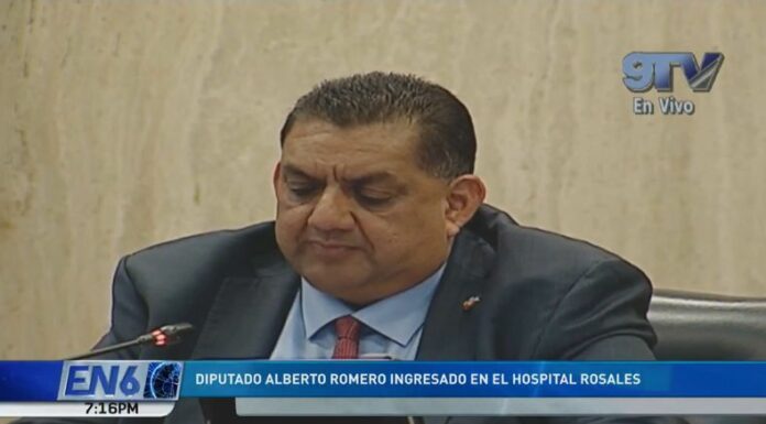 Dirigentes del partido ARENA confirmaron la noticia de que el diputado Alberto Romero había sido trasladado hasta el Hospital Rosales debido a una descompensación provocada por falta de alimentación. Aún se desconoce el estado de salud.