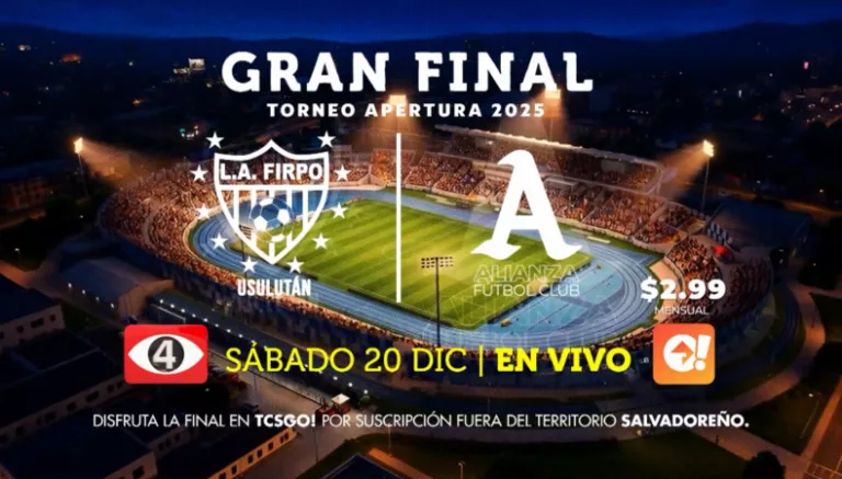 En la reedición de la final del Apertura 2001, Firpo y Alianza se enfrentarán por el campeonato del Apertura 2025 en el estadio Jorge «Mágico» González el sábado 20 de diciembre, con TCS GO podrás disfrutar del encuentro dónde quiera que estés.