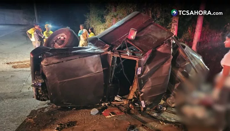 Dos mujeres fallecieron y otras tres personas resultaron lesionadas, entre ellas dos menores de edad, en un accidente ocurrido esta madrugada en el kilómetro 28 de la carretera Troncal del Norte, en el distrito de Guazapa.