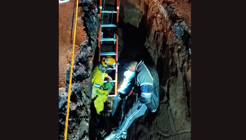 Esta noche, Comandos de Salvamento atiende a dos personas que se trasladaban en motocicleta y cayeron a una zanja, donde se realizan trabajos de tuberías. El hecho se registró en la calle a Comasagua, departamento de La Libertad.