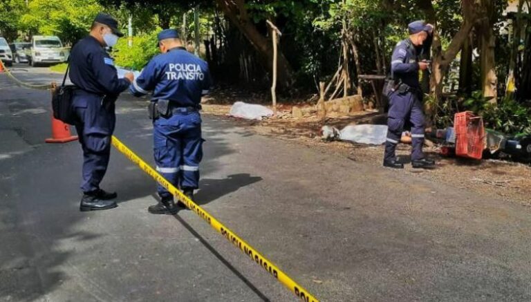 Esta tarde la Policía Nacional Civil (PNC), informó que dos personas perdieron la vida en un accidente de tránsito en la calle principal de Rosario de Mora, San Salvador. Las autoridades comunicaron que un motociclista perdió el control y atropelló a una señora que caminaba a la orilla de la calle.