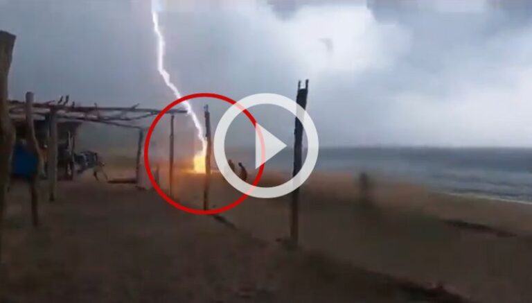 Como se observa en el siguiente clip, se logró capturar el instante exacto en que ambas personas fueron impactados por el rayo, cayendo desplomados sobre la arena.